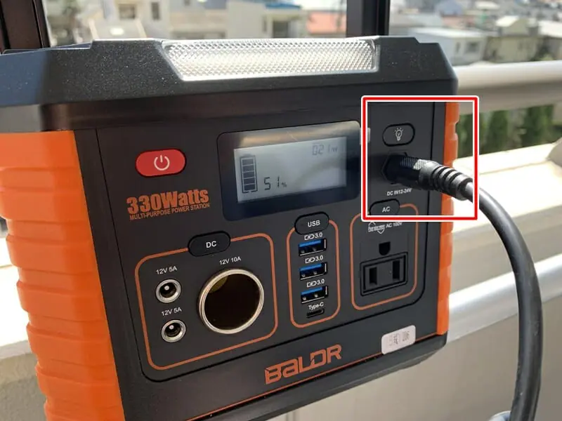 パネルに太陽光が当たっていれば、ケーブルを接続した途端に充電が開始される。
