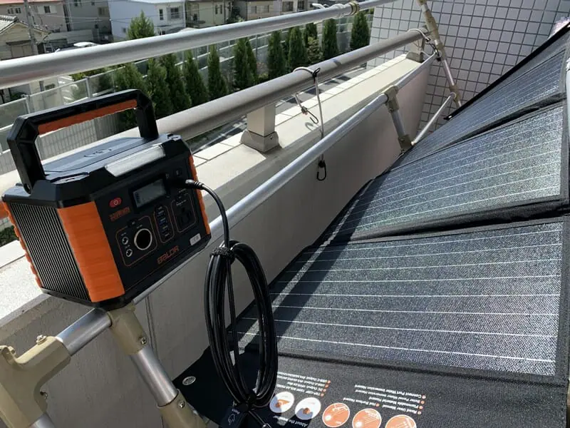▼快晴時、自宅ベランダにソーラーパネルを設置。