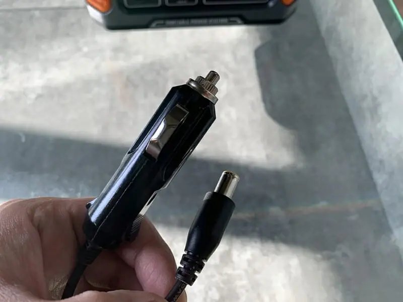 付属のシガーライタープラグコードを利用することで、自家用車のシガーソケットから電気を取り出すことが可能だ。