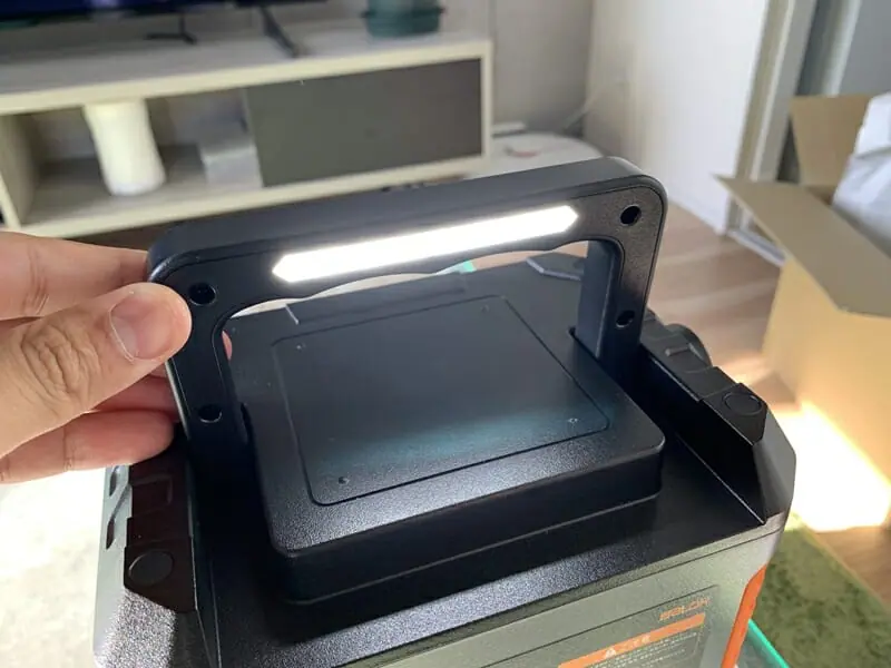 本製品の側面および取っ手部分にはLEDライトが搭載されており、ボタンを押すことで点灯する。