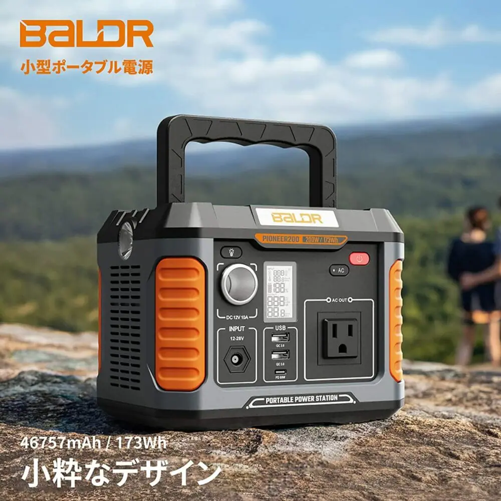 今回紹介する『BALDR PIONEER 200』は、46757mAhバッテリーを内蔵する、小型サイズのポータブル電源だ。