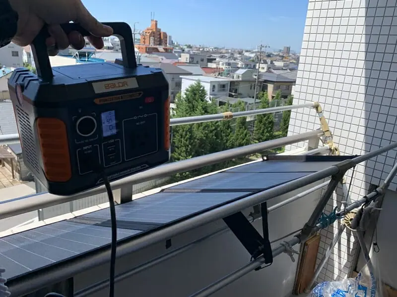 今回は私が所有している120Wソーラーパネルを使って、実際に太陽光充電を行ってみた。