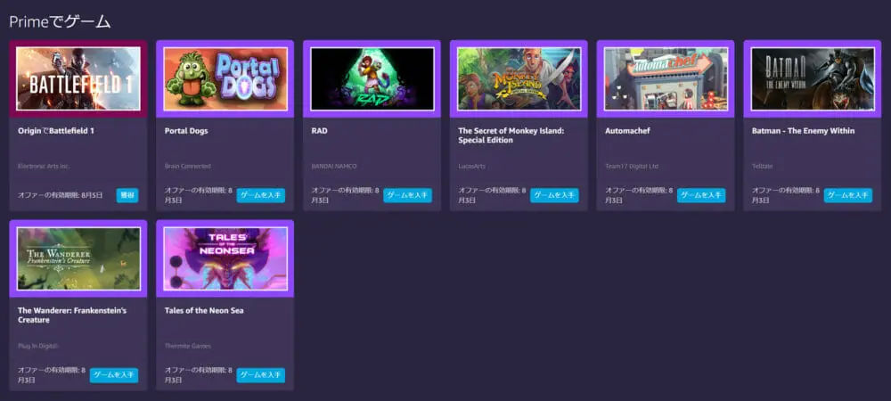 無料配布期間が短いタイトルもあるので、定期的にPrime Gamingのページをチェックすることをオススメします!