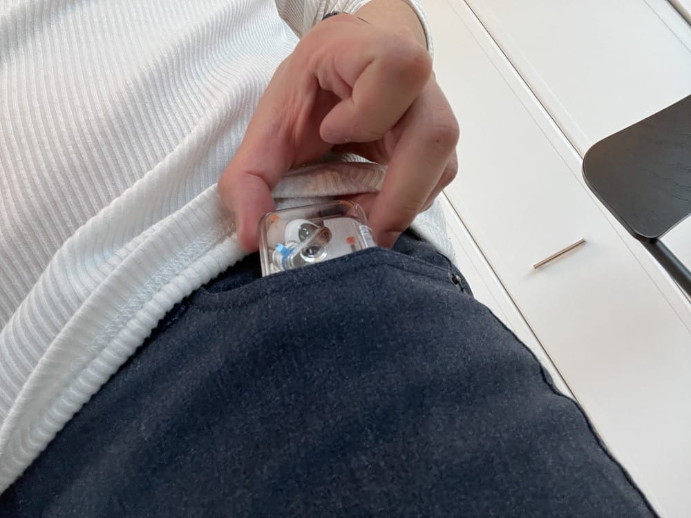 ▼ズボンのポケットにもラクラク収まるサイズ感。