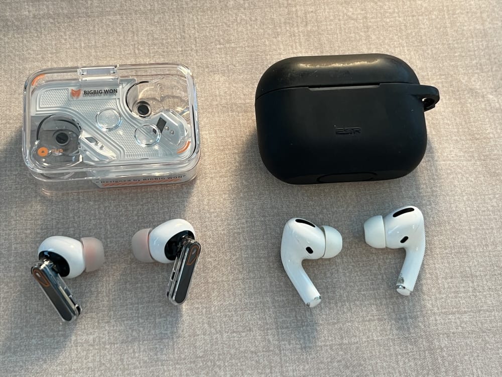 ▼本製品(画像左)とAirPods Pro(画像右)を並べた様子。