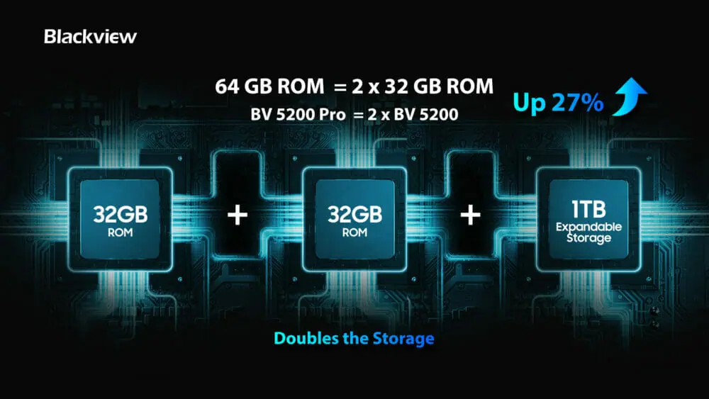 Blackview は、ユーザーのストレージに関する不安を解消し、携帯電話のパフォーマンスを向上させるため、下位モデルであるBlackview BV5200とは異なり、ストレージ容量を32GBから64GBに拡張。マイクロSDカードの挿入により、最大1TBまでの拡張も可能となっている。