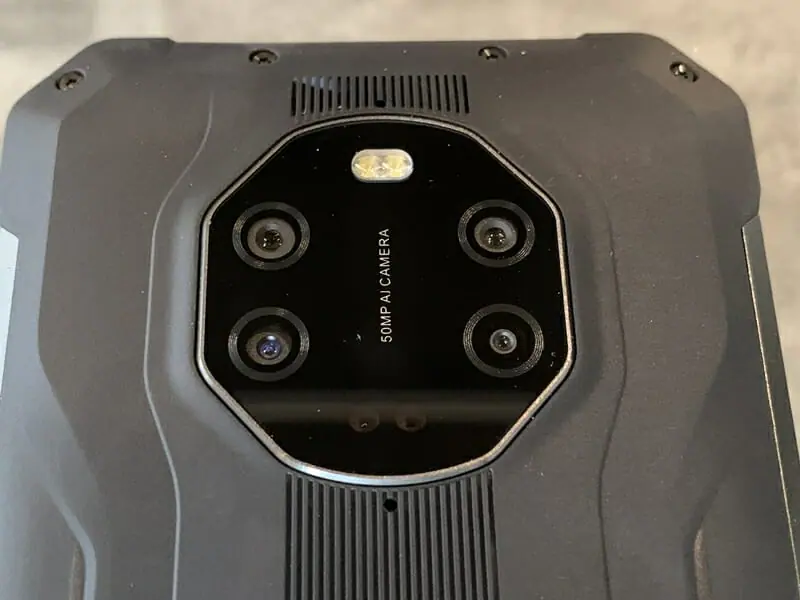 ▼背面上部には50MPメインカメラ + 超広角8MPカメラ + 深度2MPカメラ + 20MP暗視カメラを内蔵。
