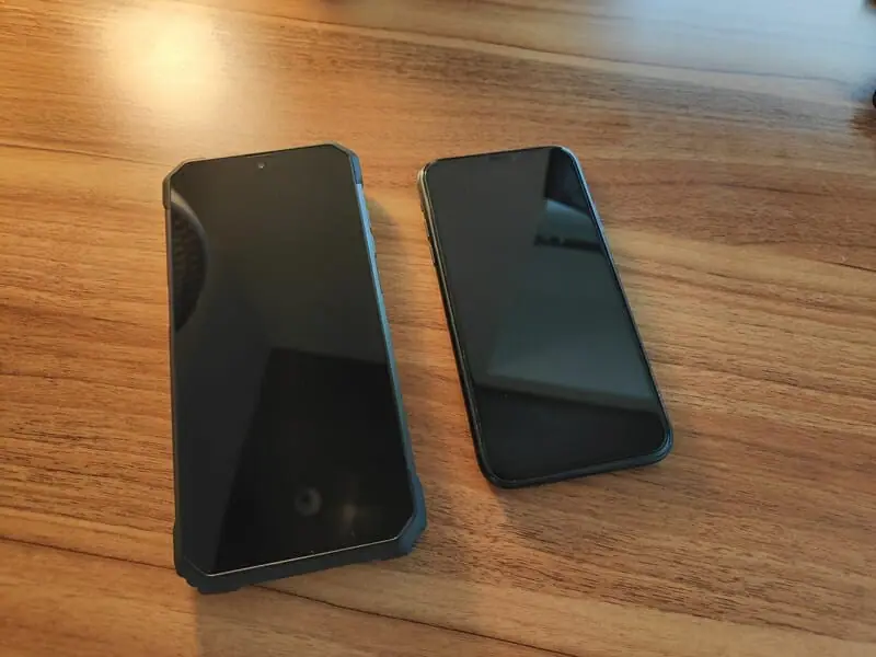 ▼iPhone XR(画像右)と並べた様子。『Blackview BV8800』の方が一回り大きいことが分かる。