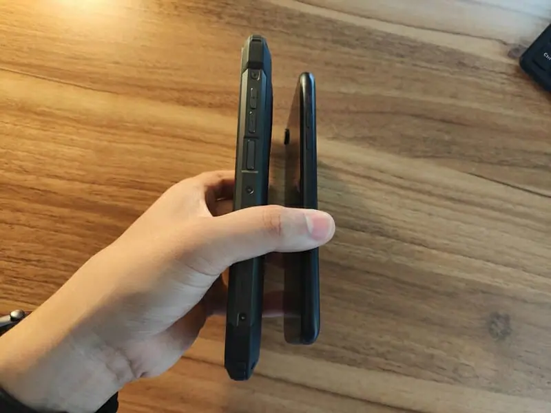 ▼厚みも『Blackview BV8800』の方が2倍ほど大きい。