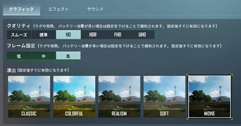 まずグラフィッククオリティに関しては『HD』までを選択することが出来た。
