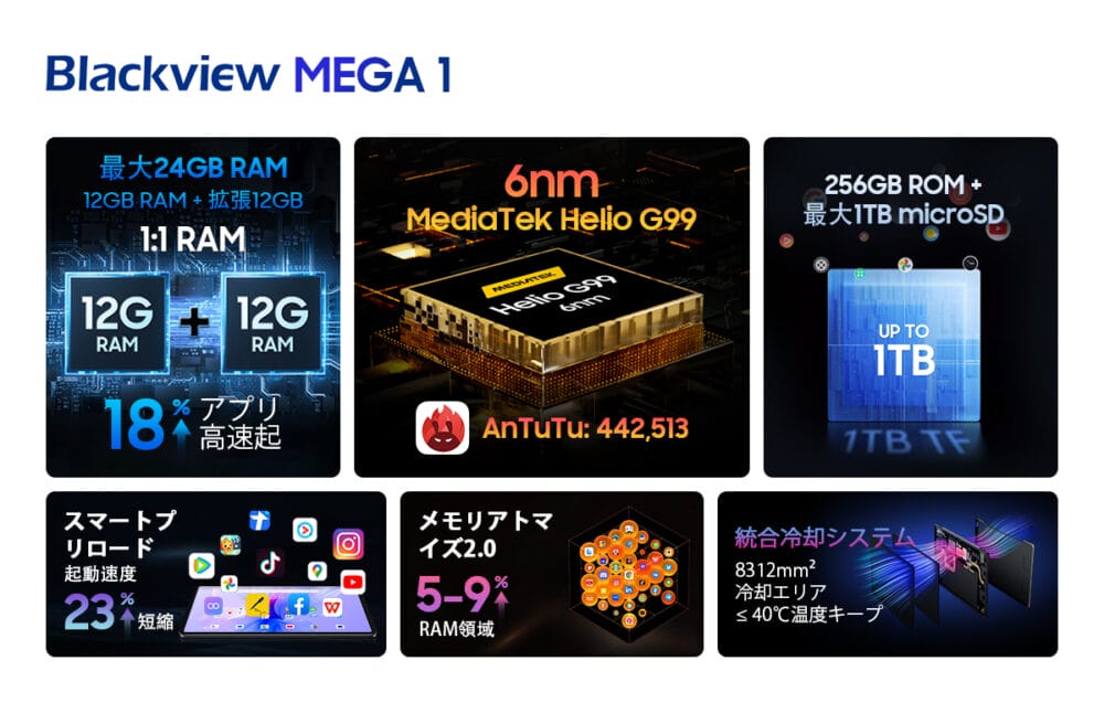 今回は『Blackview MEGA 1』のスペックや特徴について、プレリリース資料より分かりやすく紹介していく。