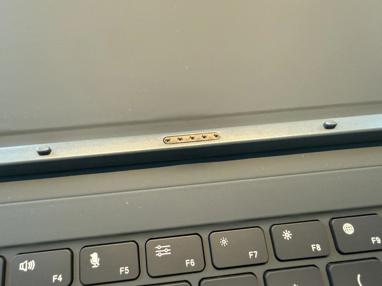 タブレット接続用の端子が設けられており、接続時に自動でPCモードに移行する設定も用意されています。