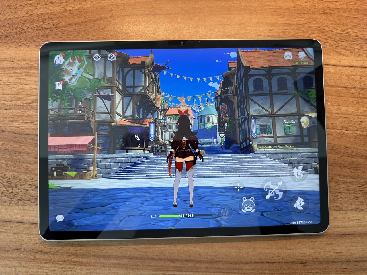 高画質設定の『原神』を大画面でプレイすると、迫力が段違いです。本機のような大型タブレットは、RPGやアクションゲームとの相性が特に良いと感じました。