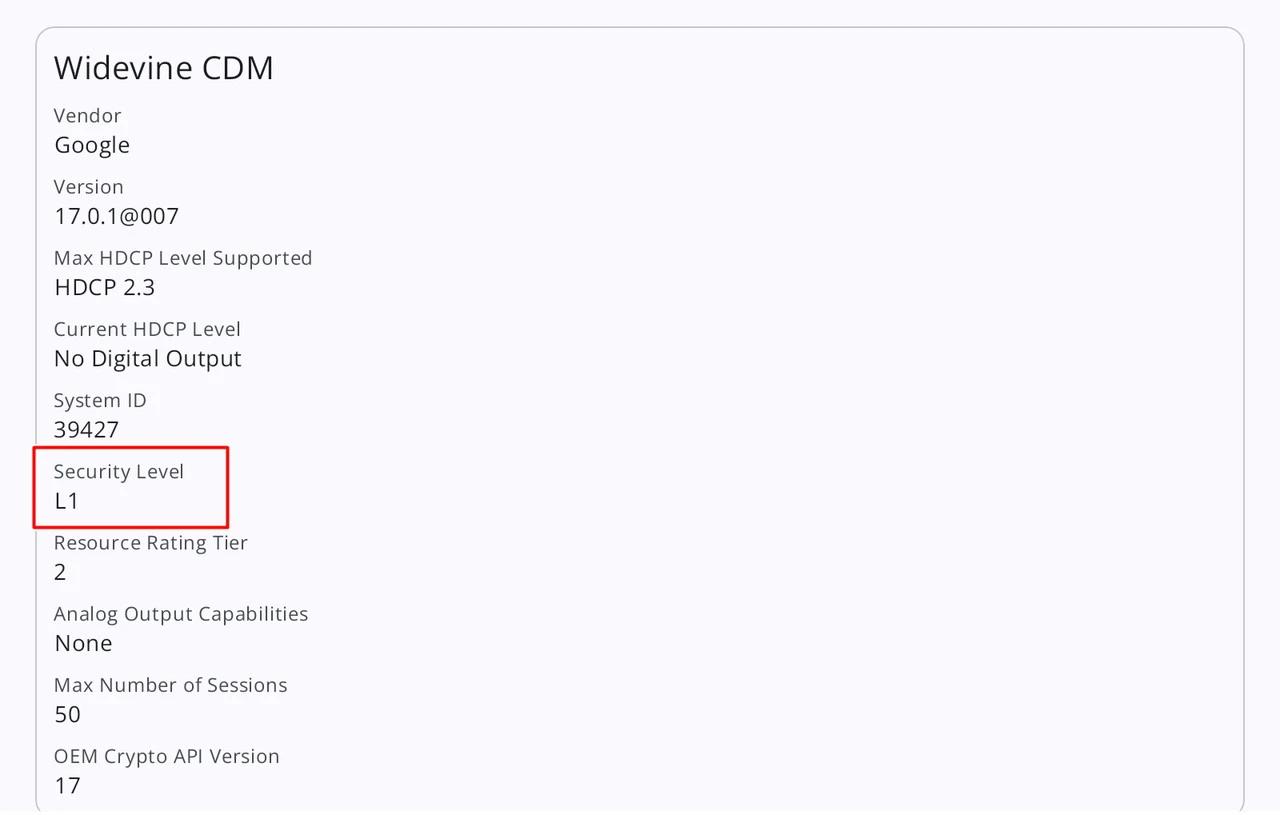 ちなみに、WidevineはL1サポートとなっており、Amazon PrimeビデオやHuluなどのサイトにおいて高画質設定の映像を楽しめます。