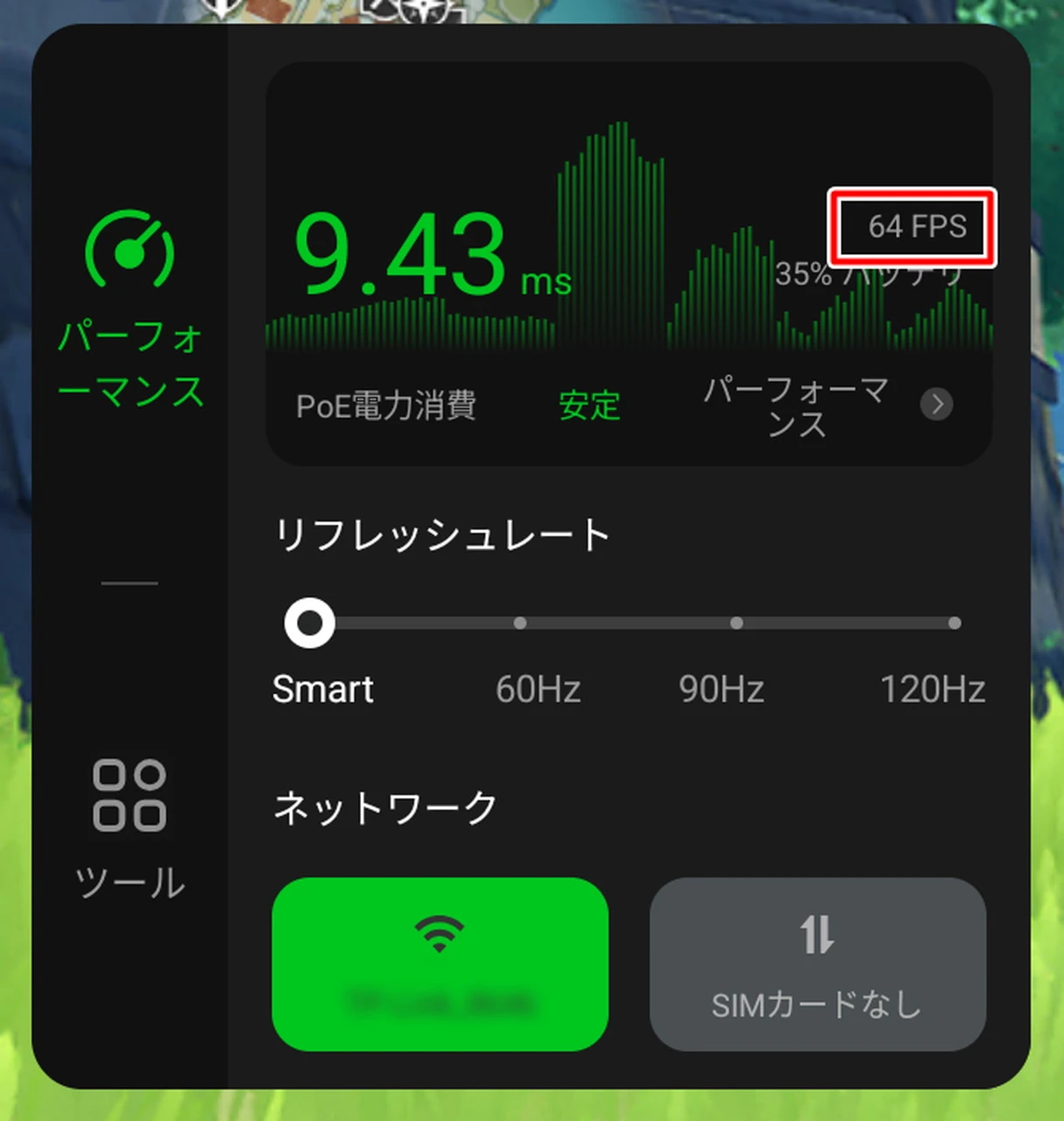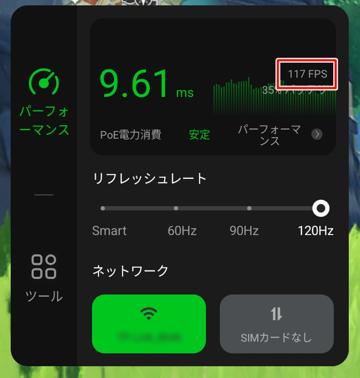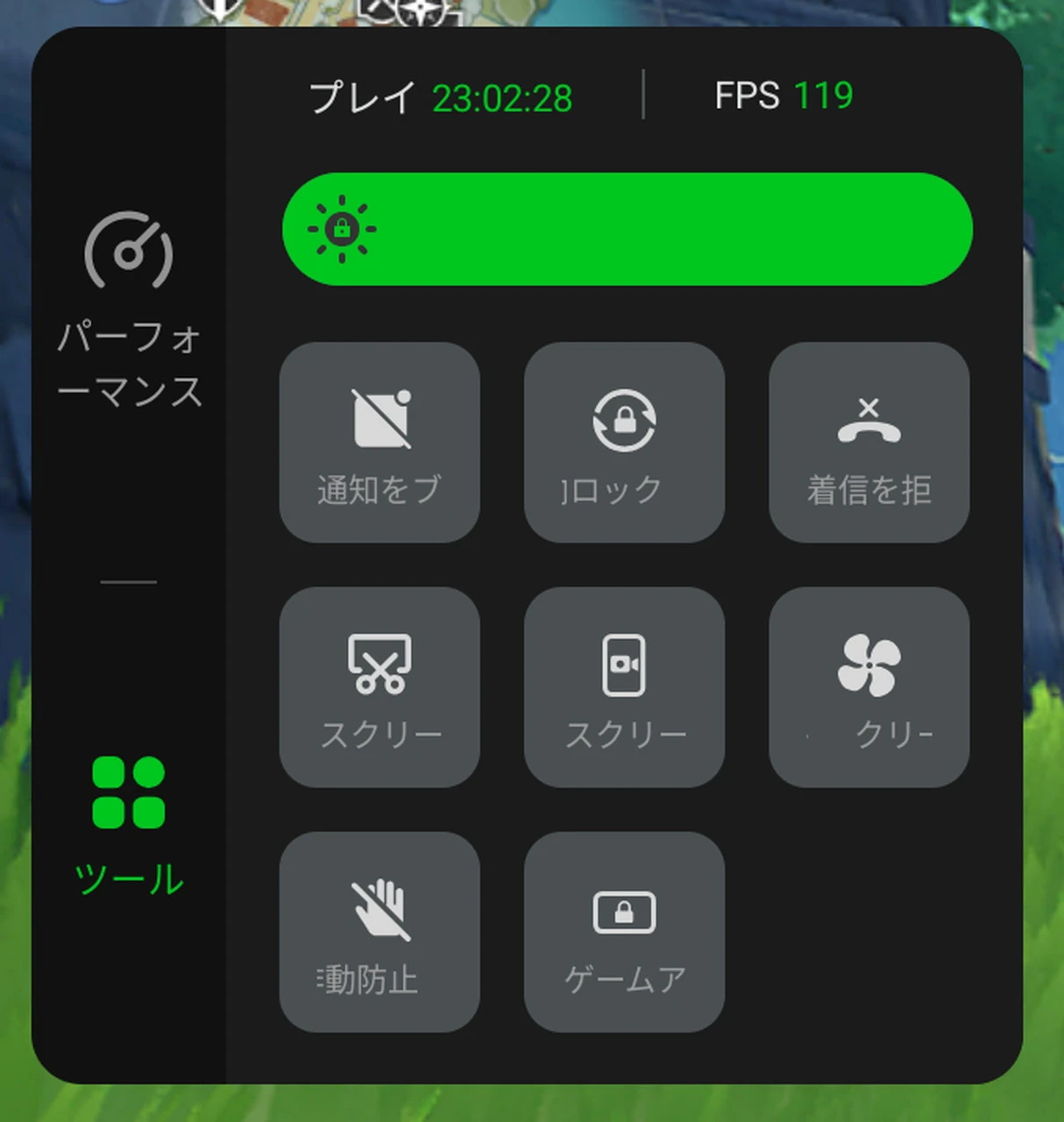 ▼ちなみに、ゲームアプリ起動時に表示されるツールウィンドウでは、パフォーマンスの切り替えから、画面録画、通知ブロックなど、ゲーミングに関する様々な便利機能を利用することが可能です。
