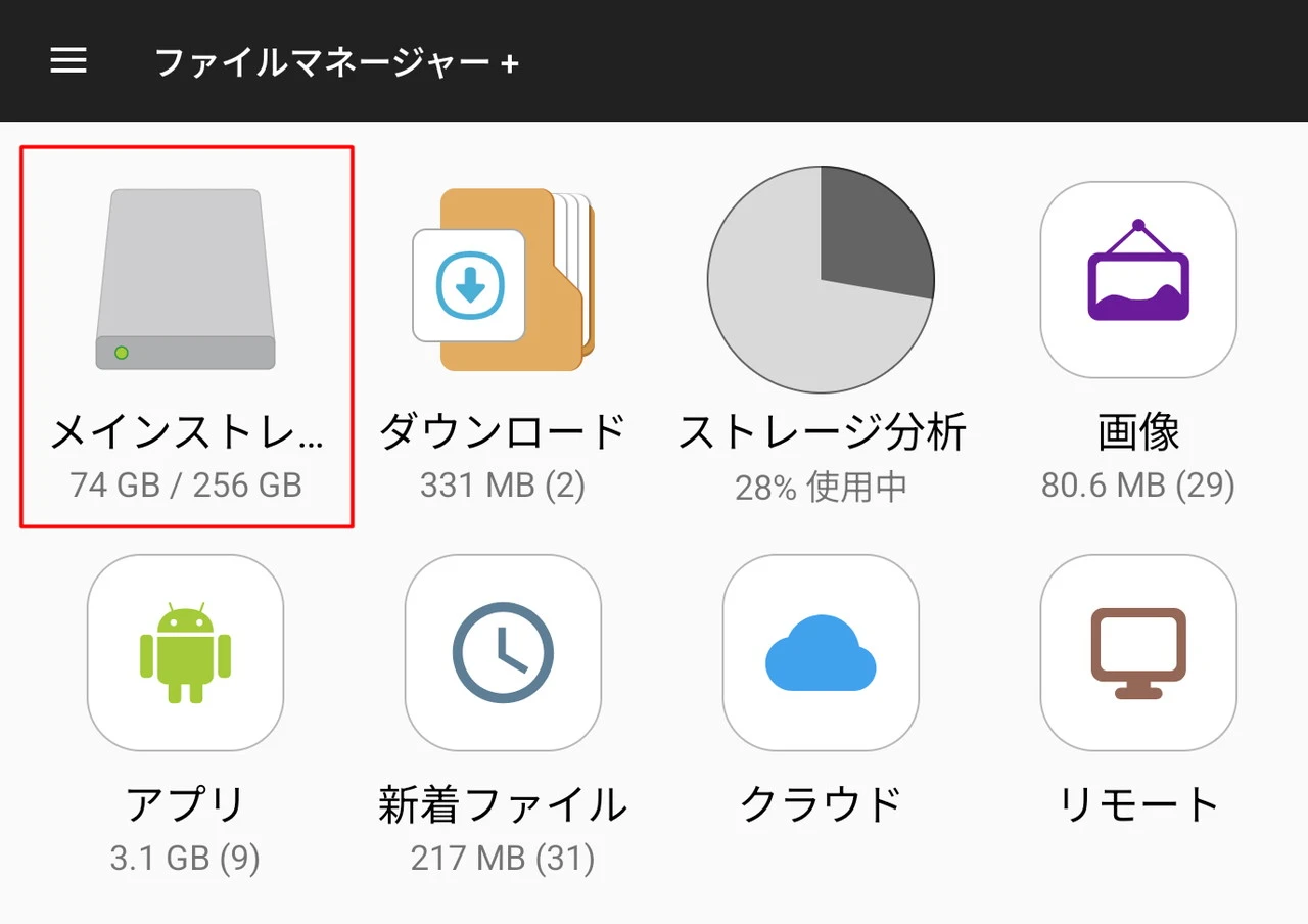 またストレージについては、ファイルマネージャーアプリおよびPC接続で確認したところ、256GB分のほぼ全領域を使用可能であることを確認できました。
