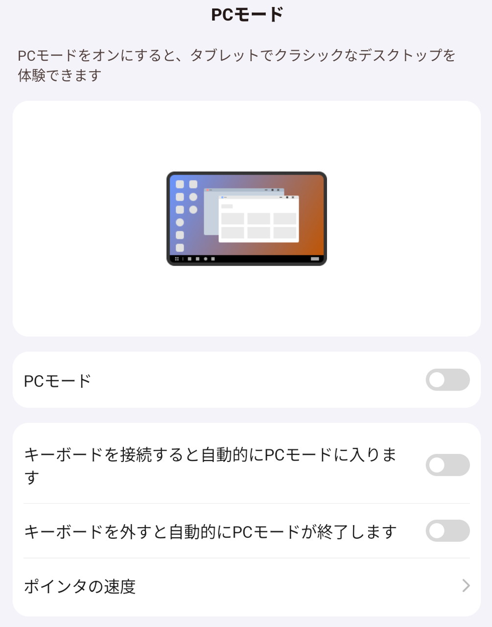 本製品はPCモードに対応しており、Windowsのようなインターフェース配置でタブレットを利用できる。