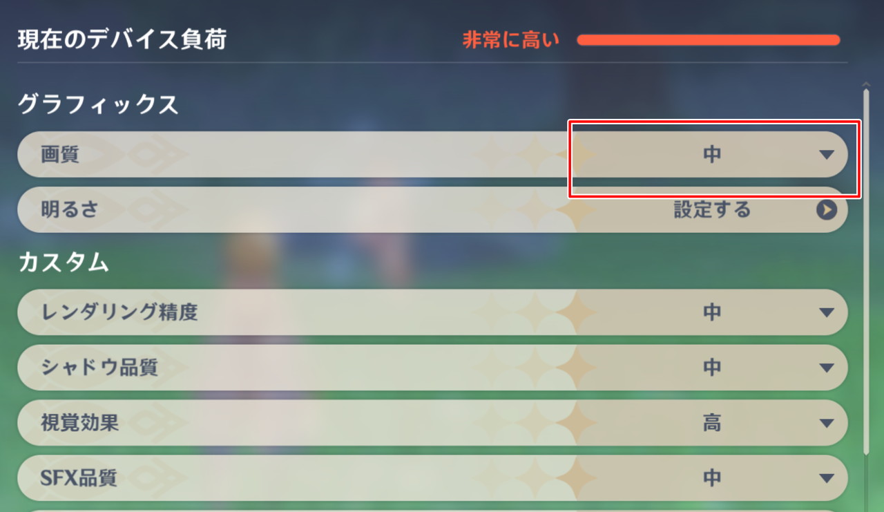 ▼"中" 画質設定以上に上げると、シーンによっては多少のカクつきを感じることはあるものの、ゲームプレイ自体に支障をきたすレベルではなかった。