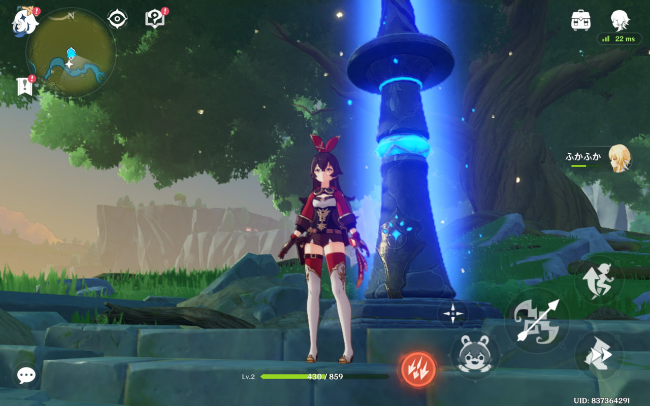 ▼"中" 画質設定プレイ時。そこそこ綺麗な描画で原神の世界を楽しめる。
