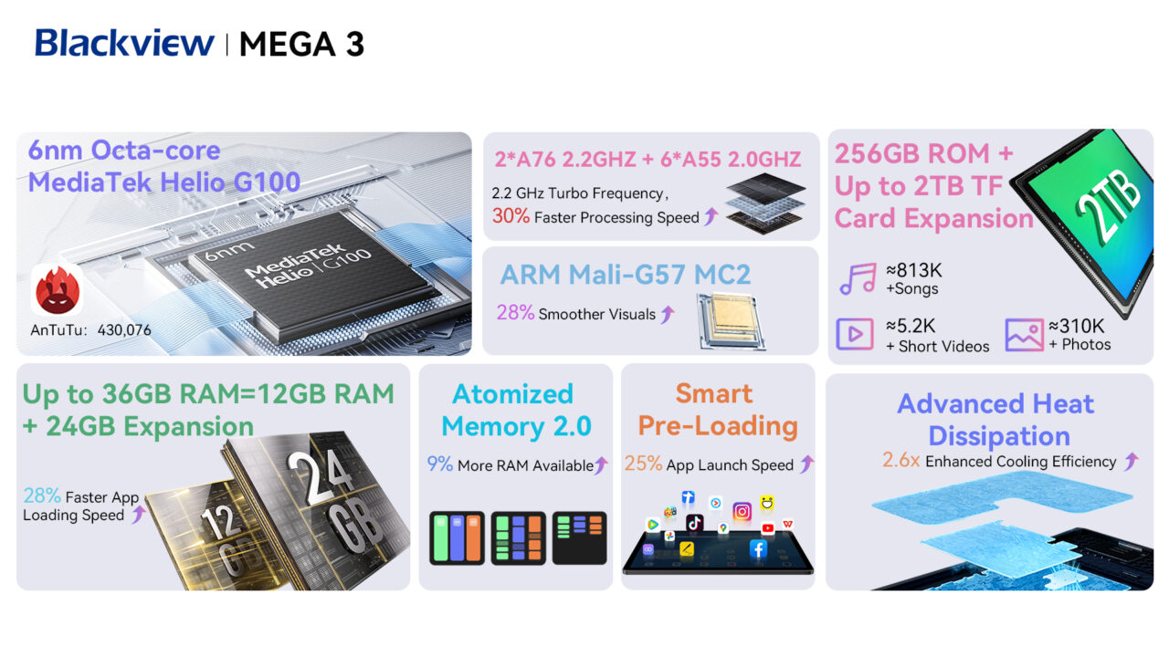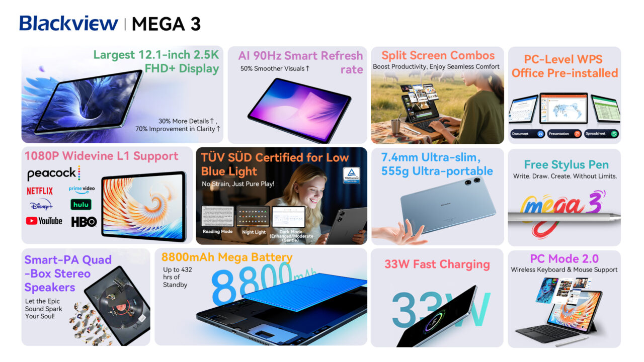 世界市場、特にヨーロッパ、アフリカ、アジアで多くのモバイルデバイスをリリースしてきたBlackview(ブラックビュー)は、同ブランドの最新タブレット『Blackview MEGA 3』を発表した。