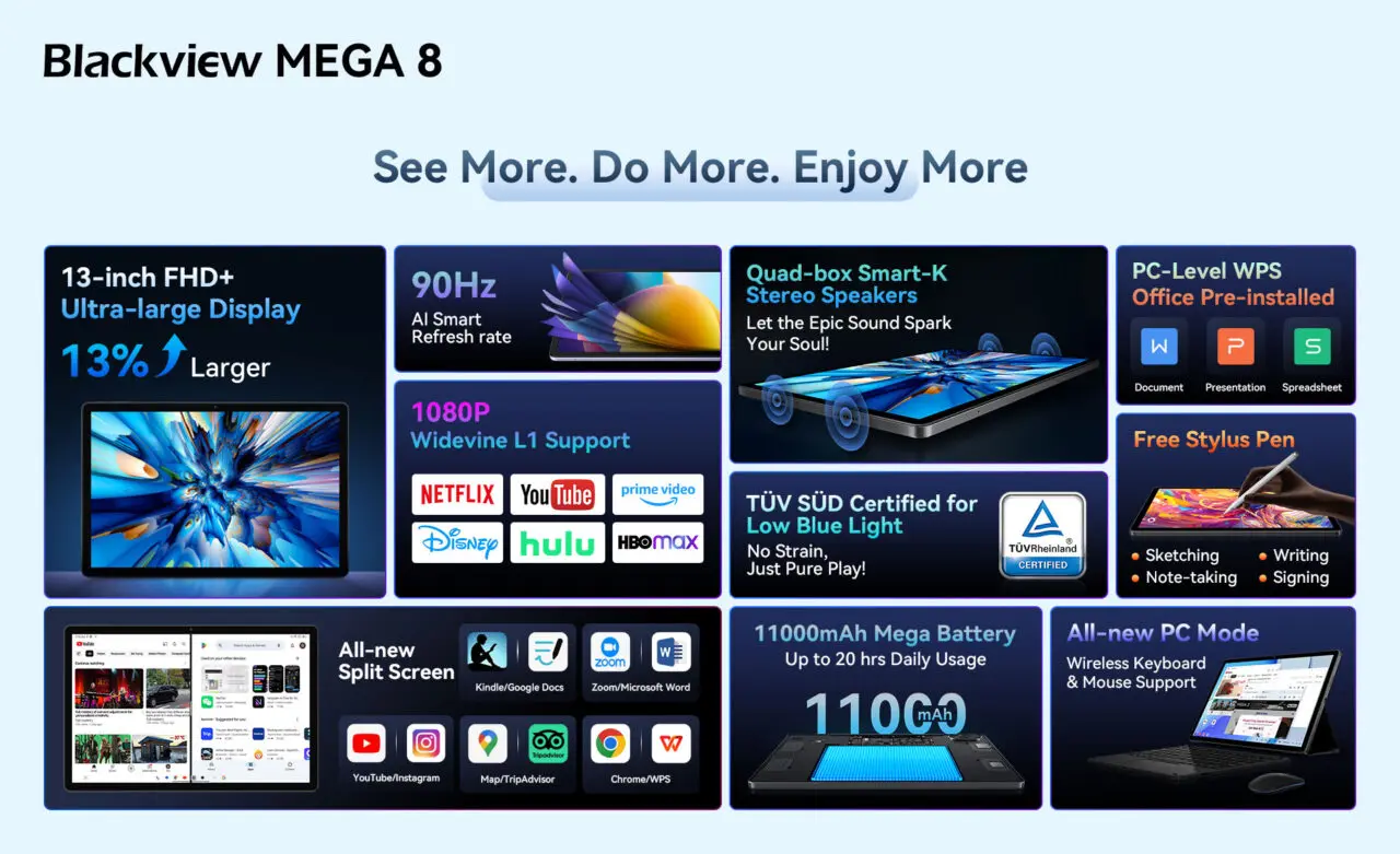 世界市場、特にヨーロッパ、アフリカ、アジアで多くのモバイルデバイスをリリースしてきたBlackview(ブラックビュー)は、同ブランドの最新タブレット『Blackview MEGA 8』を発売しました。