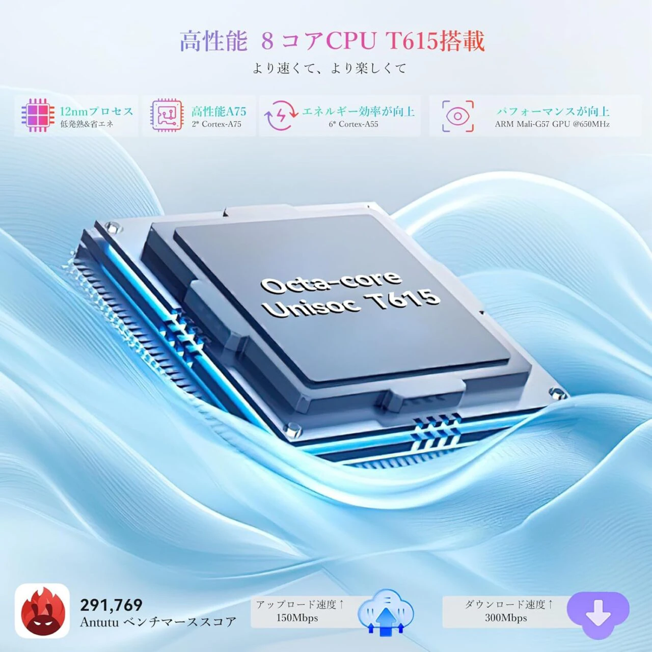 | CPU(SoC) | Unisoc T615 オクタコアプロセッサー |