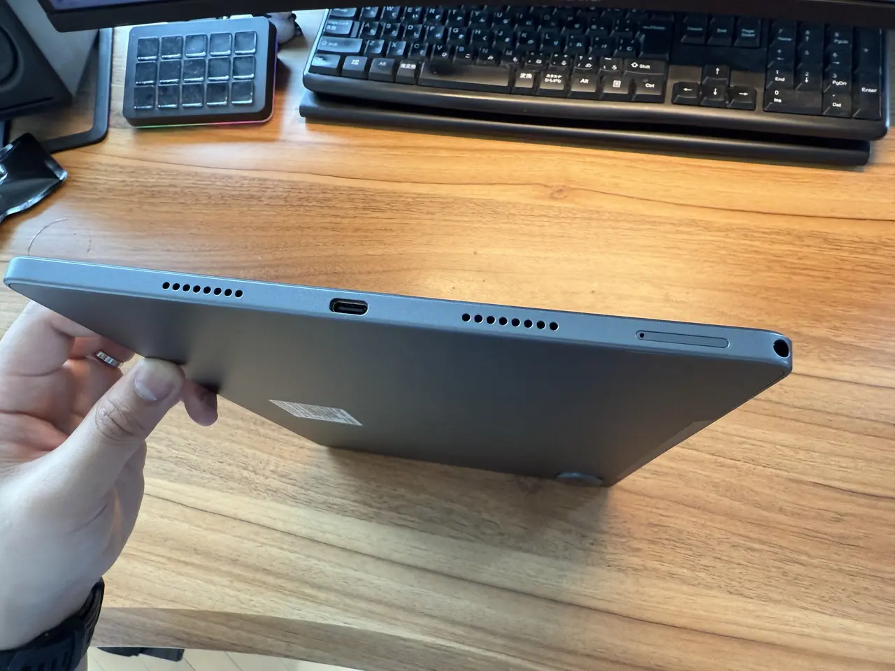 ▼下部には2基のスピーカーに加えて、Type-Cポート、カードスロット、3.5mmイヤホンジャックが用意。