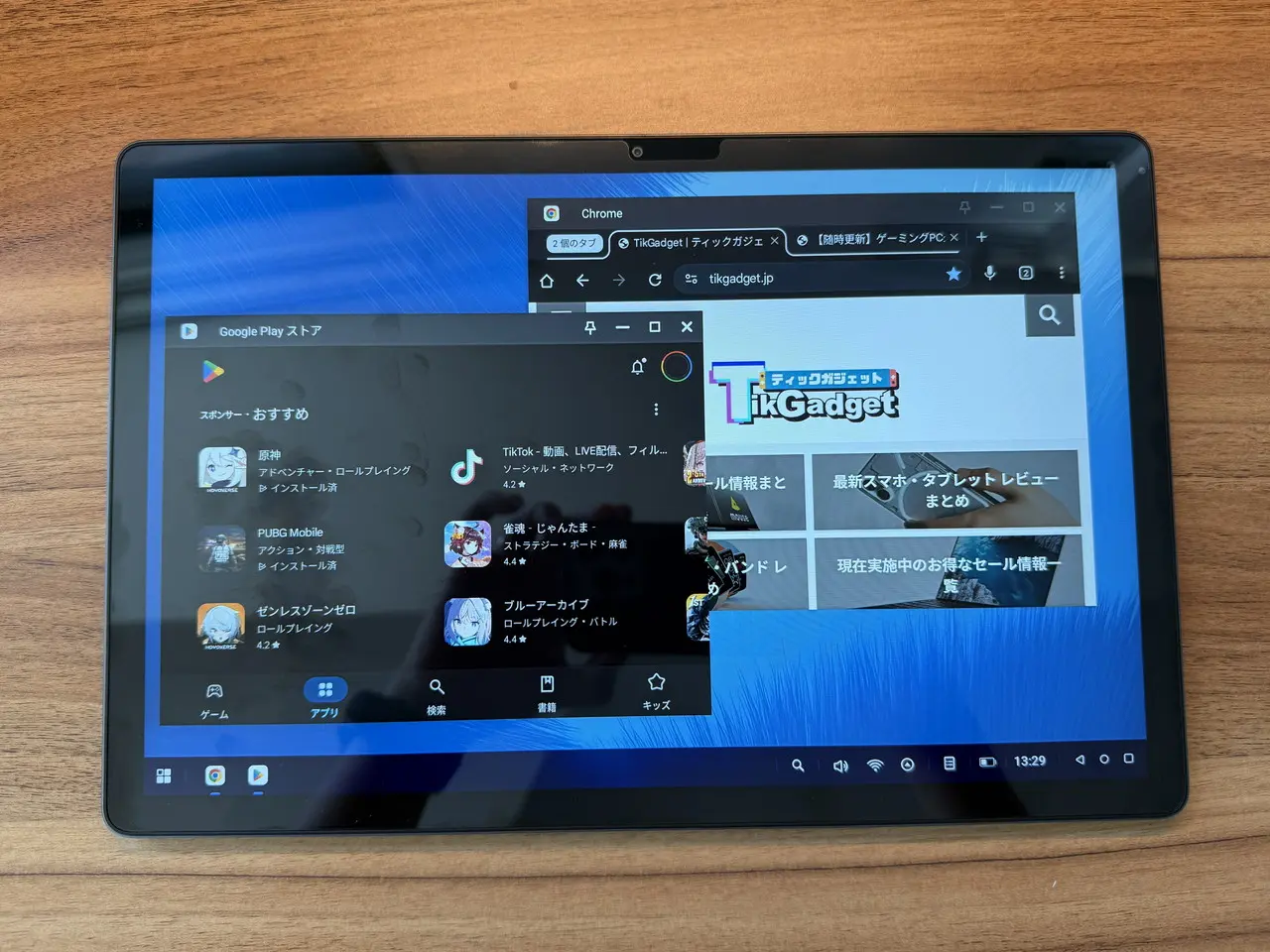 基礎性能自体エントリークラスだが、ウェブサイト閲覧や動画視聴など、一般的なタブレット用途は支障なくスムーズにこなすことができる。マインクラフトやPUBGなどに加え、原神レベルのゲームアプリでも、設定次第では遊ぶこと自体は可能であった。
