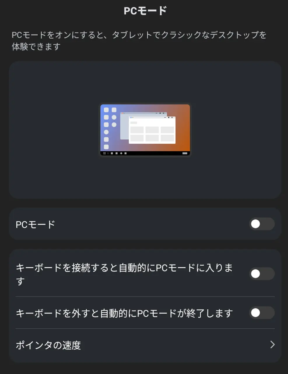 本製品はPCモードに対応しており、Windowsのようなインターフェース配置でタブレットを利用できる。