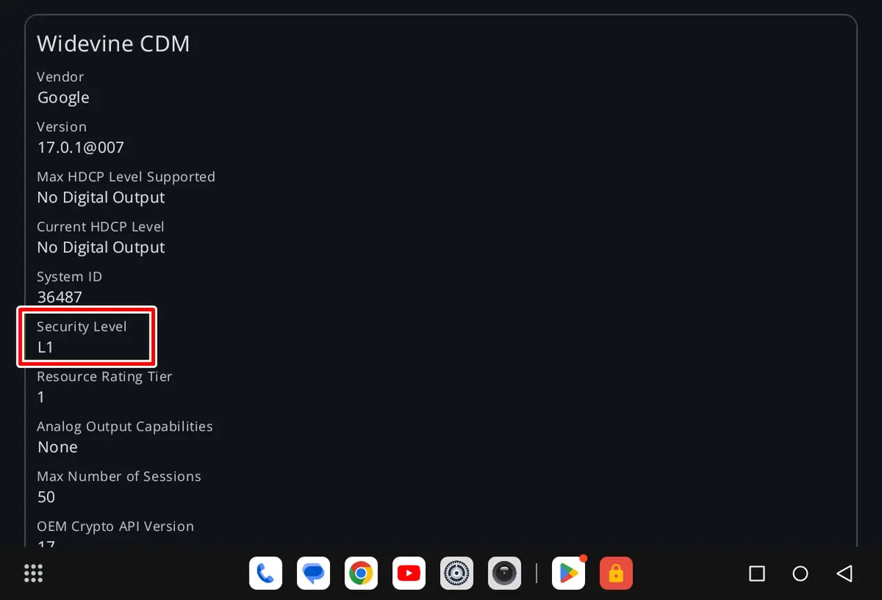 WidevineはL1サポートとなっており、ネトフリやAmazon Primeビデオなどのサービスで高画質設定の映像を楽しめる。