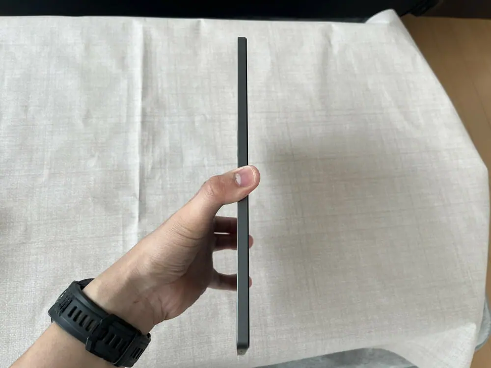 ▼厚みは7.6mmと薄く、カバンなどに入れて持ち運んでも支障にならないだろう。