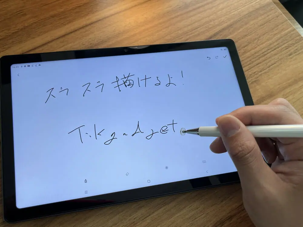 タッチペンを利用することで、タブレット上のお絵かきアプリなどへ直接書き込んだり、メモ帳アプリに手書き調のメモを残すことができる。