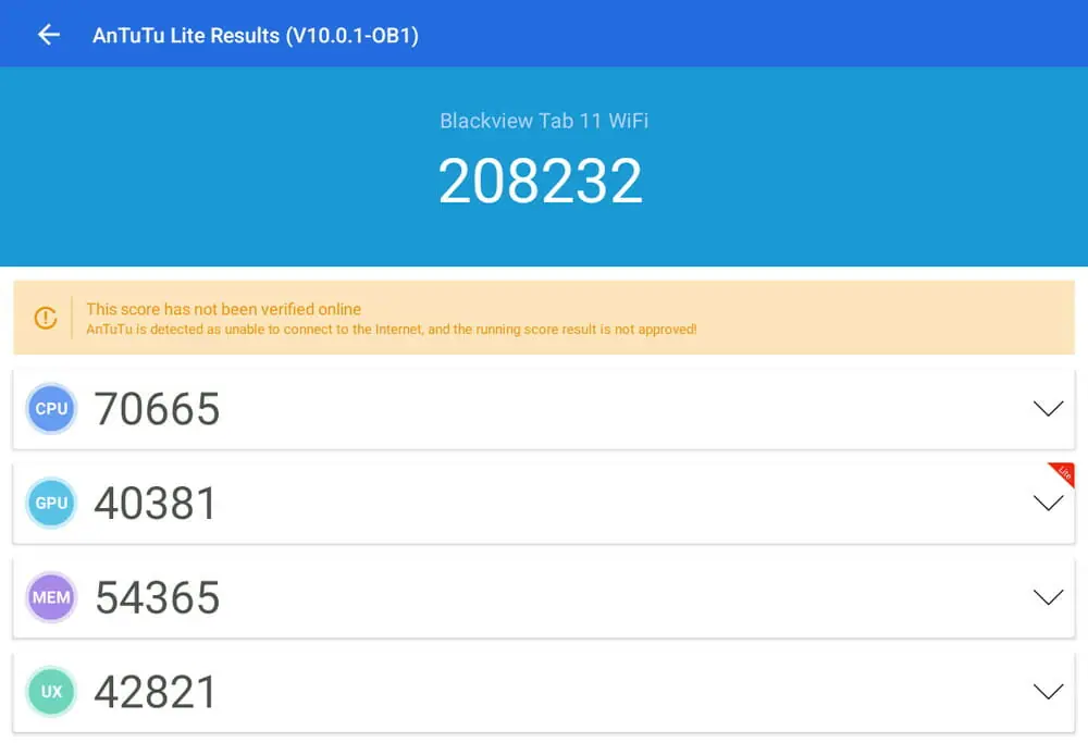 結果として、AnTuTu Benchmark v10.0.1-OB1で約16.8万点、AnTuTu Lite v10.0.1-OB1で約20.8万点を記録した。