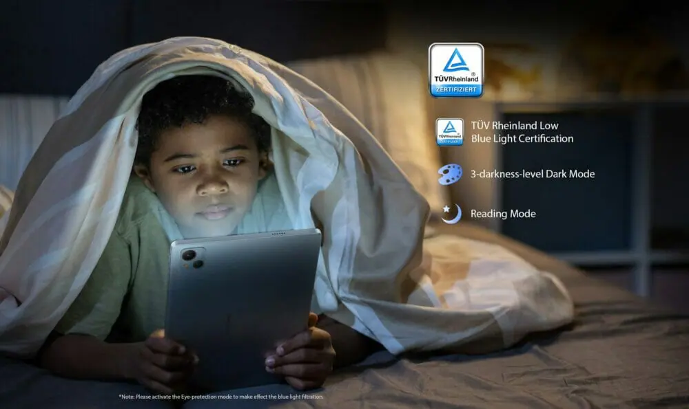Blackview Tab 13では、Blackviewデバイスの中で初めて "TÜV Rheinland Low Blue Light" 認定ディスプレイが採用されている。