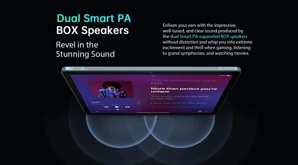 Blackview Tab 13には、よりクリアなサラウンド サウンドを提供するデュアルスピーカーが搭載されており、オーディオ品質に関しては、従来シリーズのどのモデルよりも優れている。