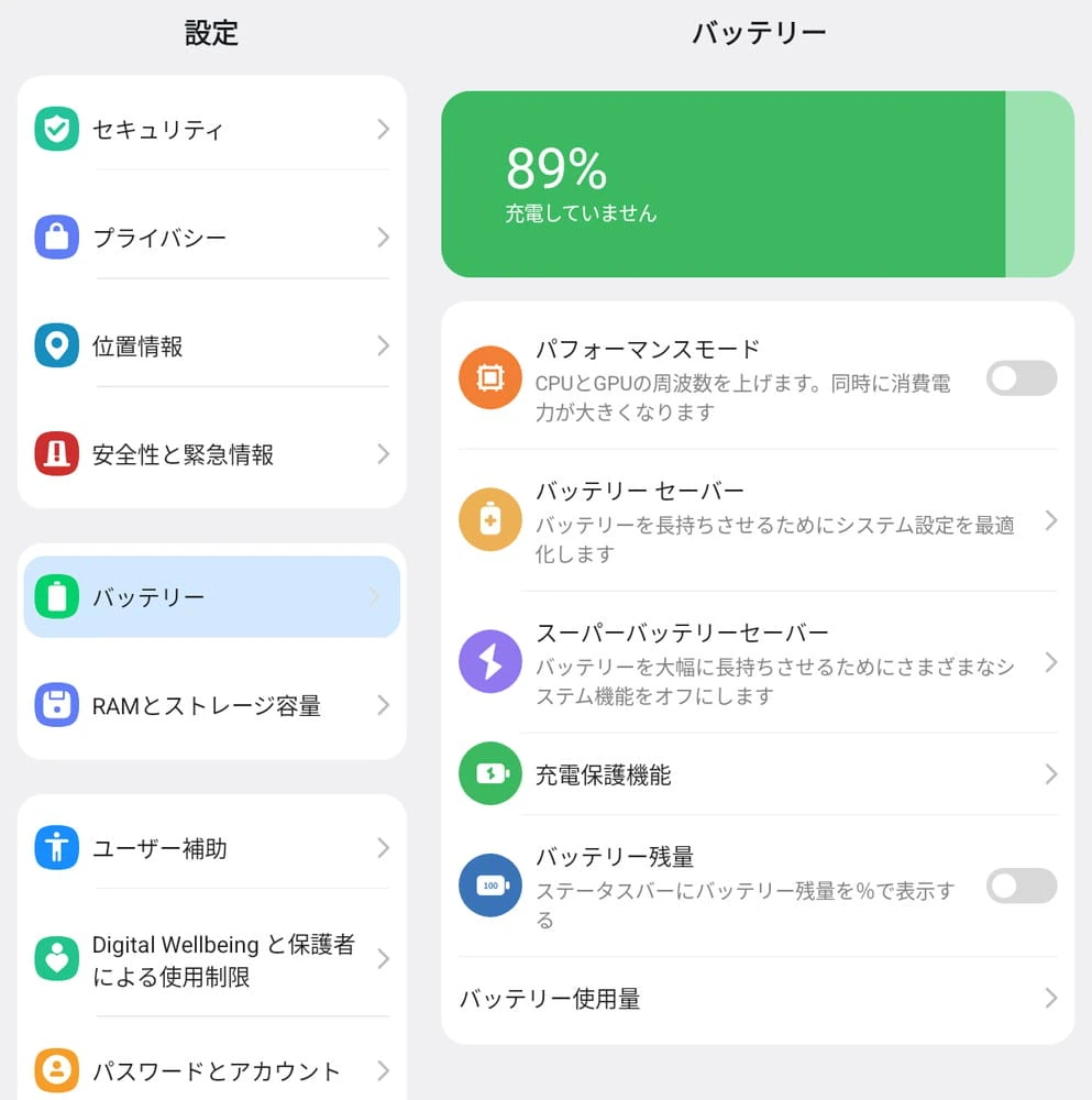 実際に使用してみたところ、動画視聴、ウェブブラウジング、少々のゲームアプリ起動などを日中に行ってみたが、計10時間ほどは充電なしでも利用し続けることが可能であった。