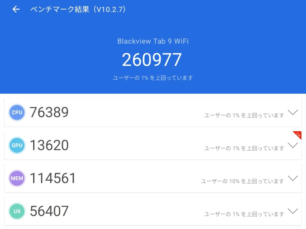 以上の通り、2万円台の格安タブレットとしては優れたパフォーマンスのモデルとなっている。