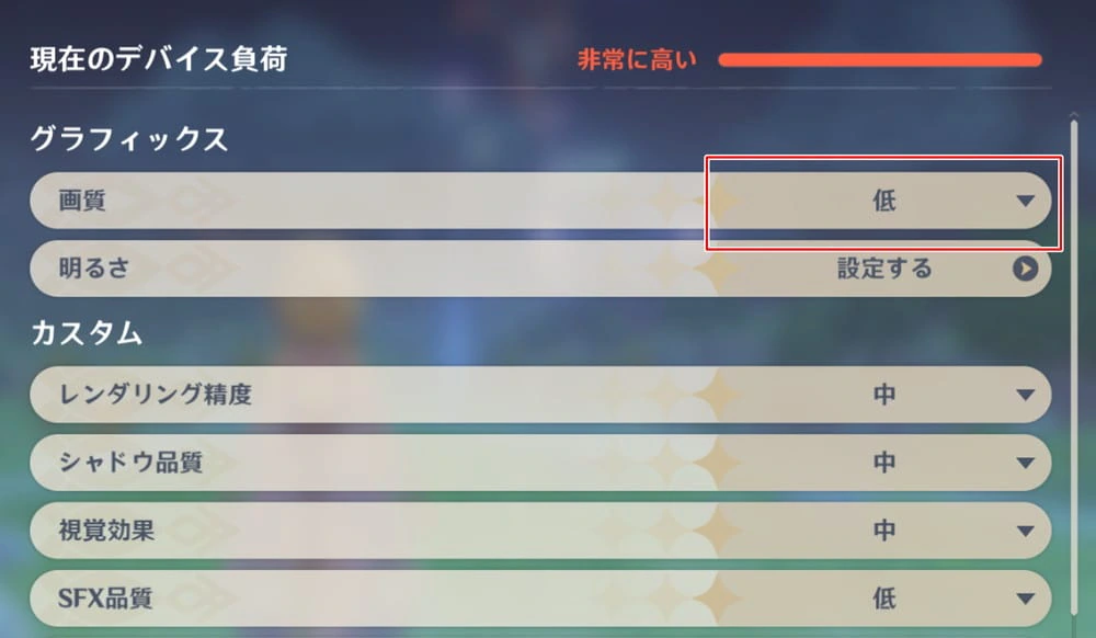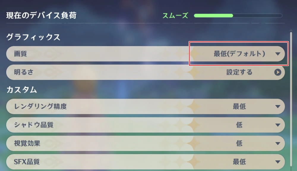 ▼画質設定はデフォルトで "最低" に設定されている。