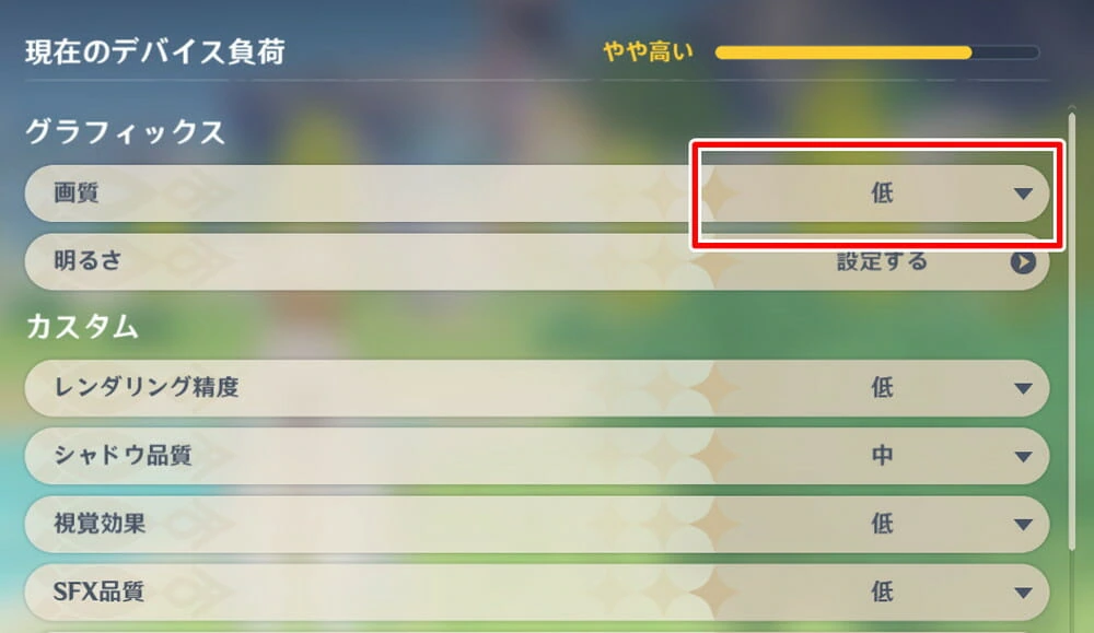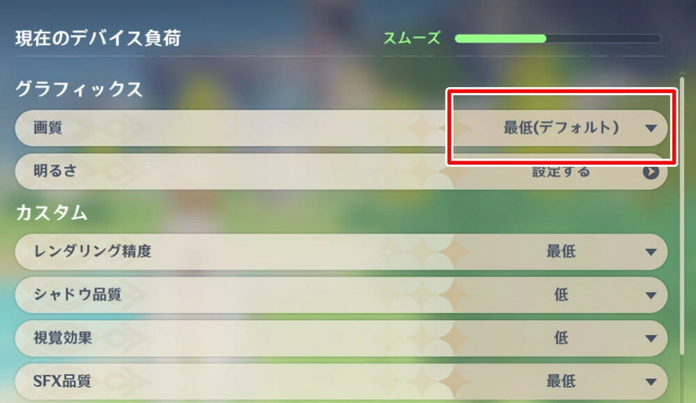 ▼ "低" に上げるとデバイス負荷が高まるが、依然として快適なゲームプレイが可能であった。