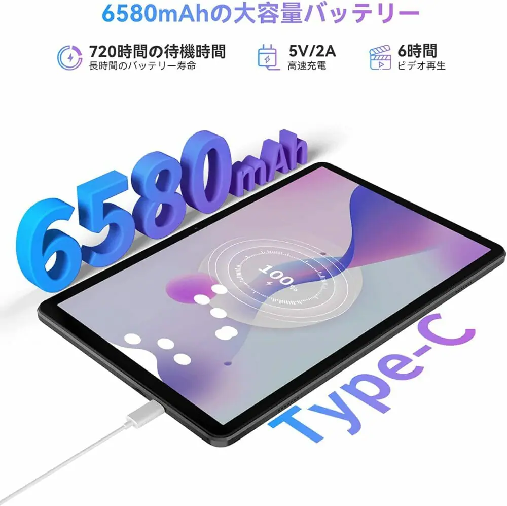 バッテリー容量は6,580mAhと大きめであり、長時間の連続使用が可能。外出先でも安心して長時間利用でき、利便性に優れていると言える。