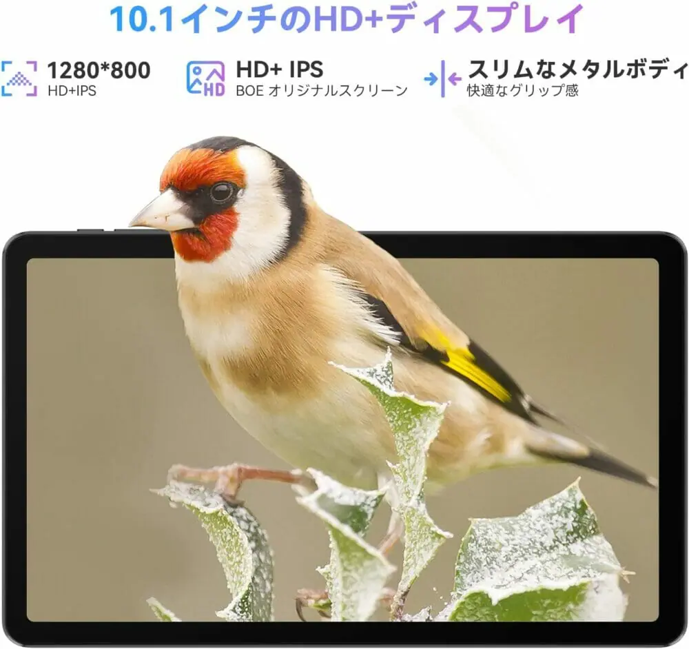 10.1 インチ、アスペクト比16:10、1280×800(HD+)解像度に対応したIPSパネルのディスプレイを搭載。鮮明でカラフルな映像を楽しむことが出来る。