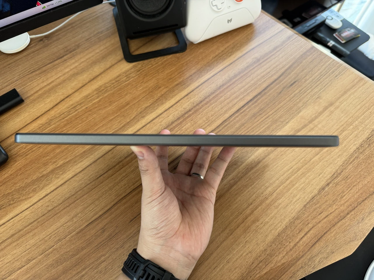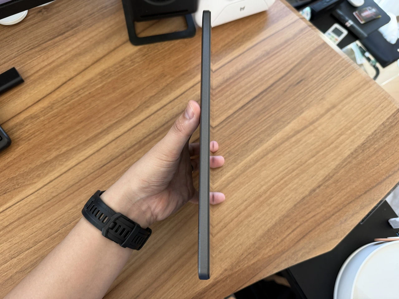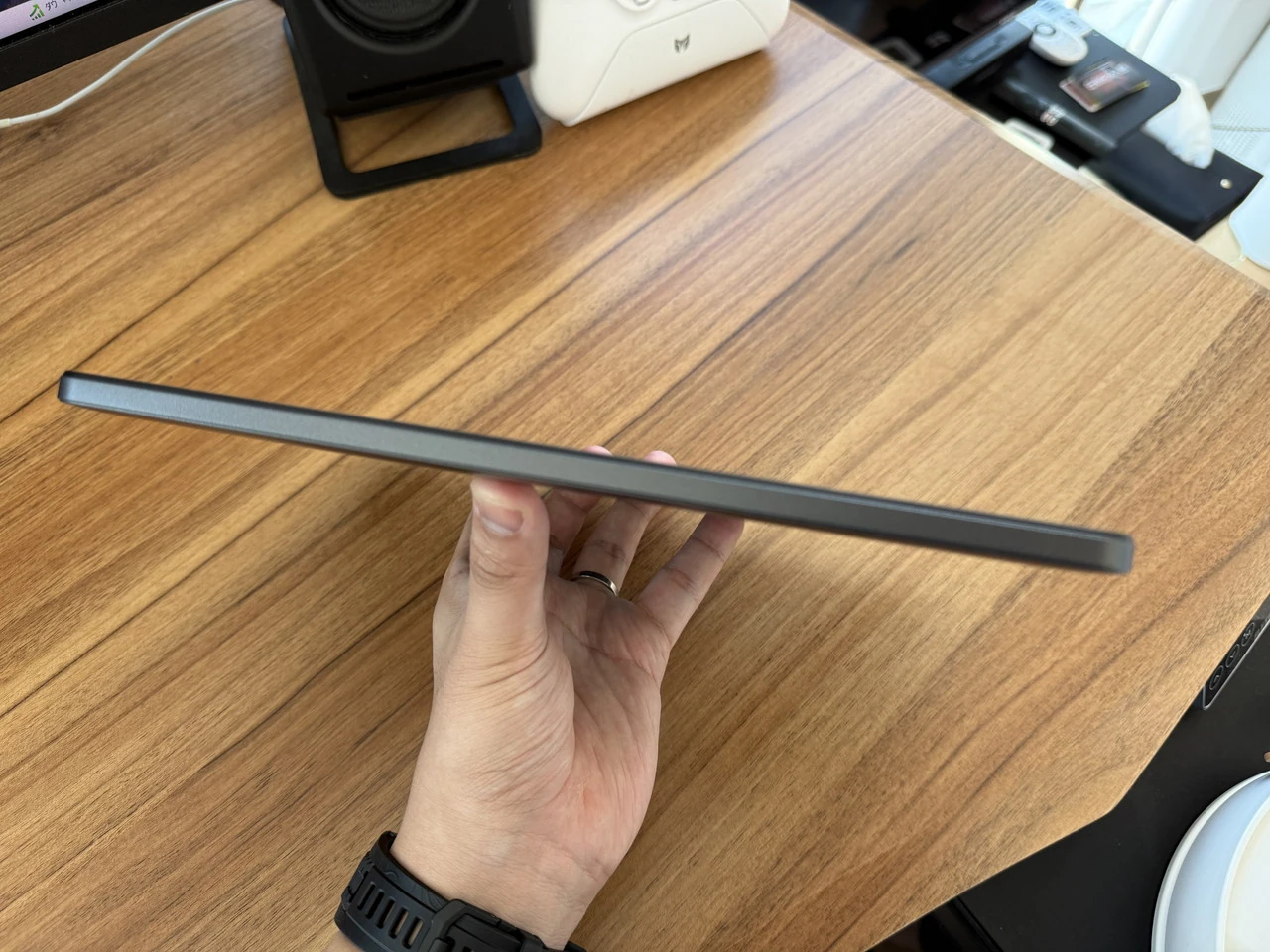 ▼厚みは9.5mmと薄く、カバンなどに入れて持ち運んでも支障にならないだろう。
