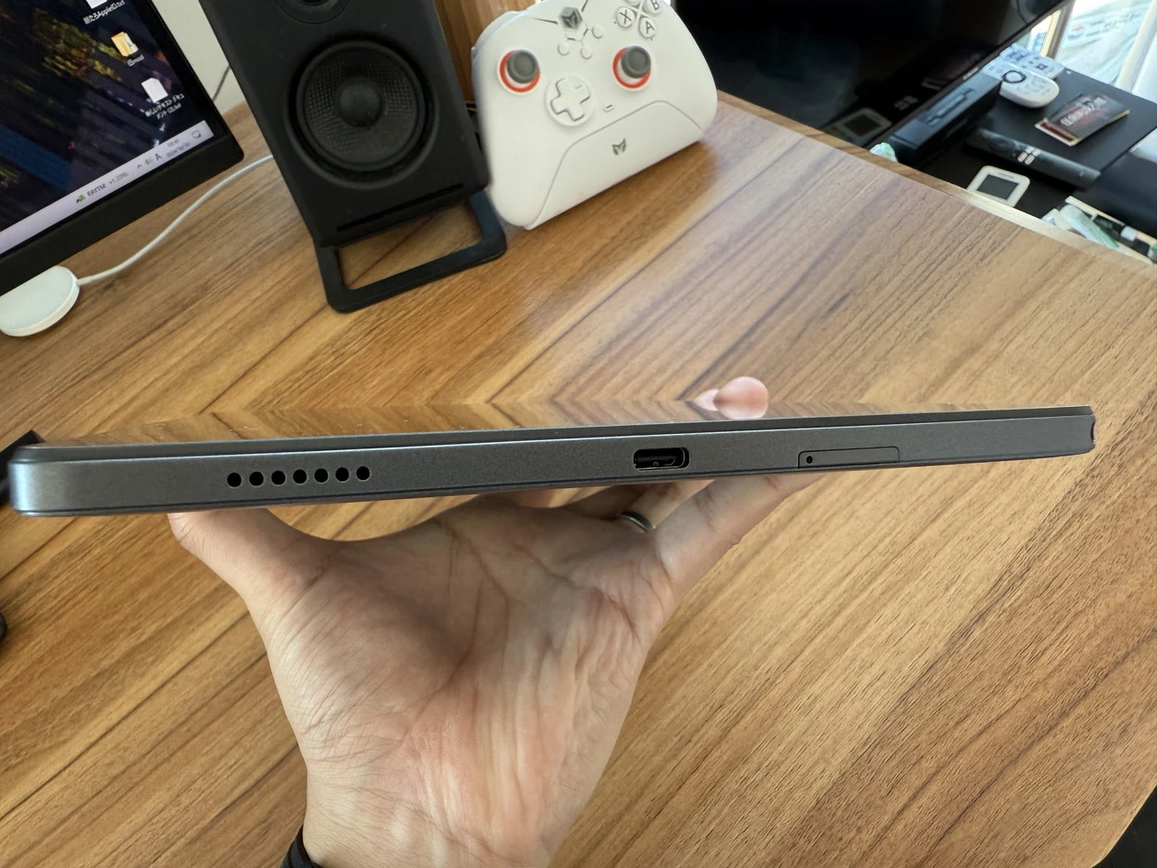 ▼下部の様子。スピーカーに加えて、Type-Cポート、カードスロット、3.5mmジャックが用意。