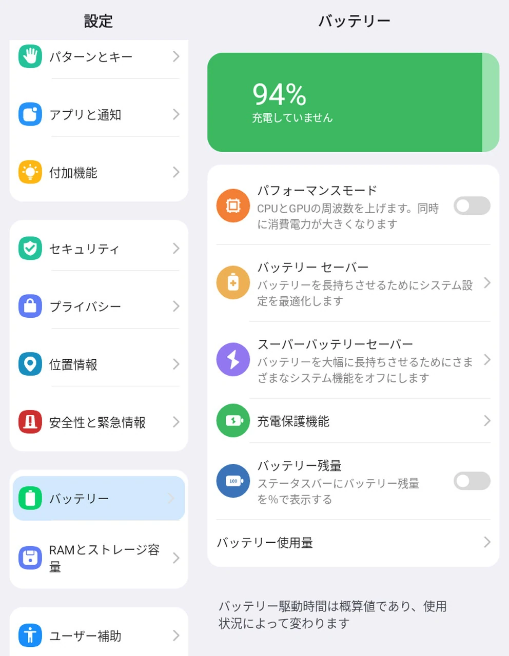 ▼バッテリーセーバーなど、バッテリー寿命を延ばすための機能も充実。