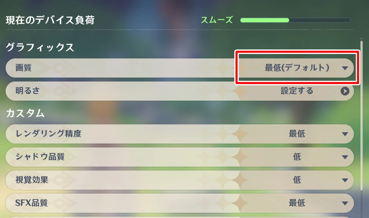▼画質設定はデフォルトで "最低" に設定されている。