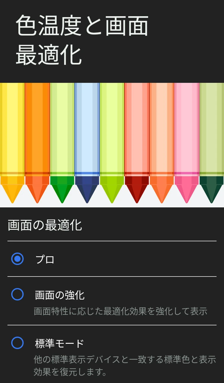 発色はやや薄めな感じもするが、設定画面より色温度の調節が可能だ。