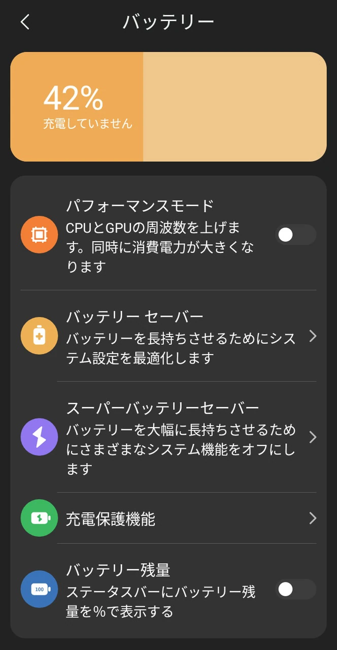 ▼稼働モードを「バッテリーセーバー」もしくは「ウルトラバッテリーセーバー」に変更すれば、さらに長持ちさせることが可能だ。