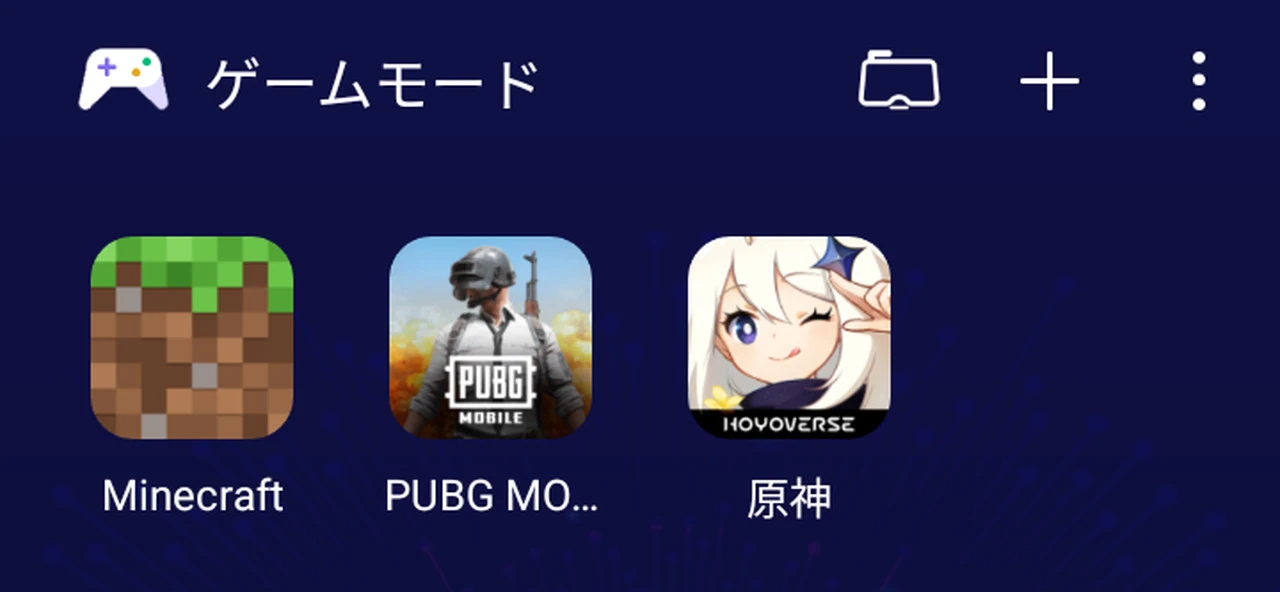 本製品には「ゲームモード」アプリがプリインストールされており、インストール済みのゲームアプリを追加することで、パフォーマンス切り替えやゲーム向け機能の利用が可能となる。
