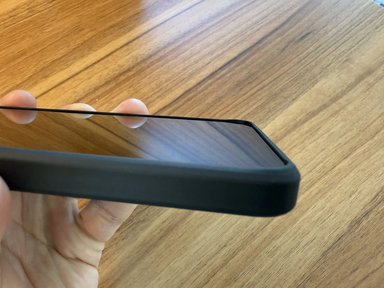 ▼四隅の縁は若干凸形状になっており、スマホを落としてしまった場合などに、ディスプレイへ直接衝撃が加わるのを防ぐ役割を果たす。