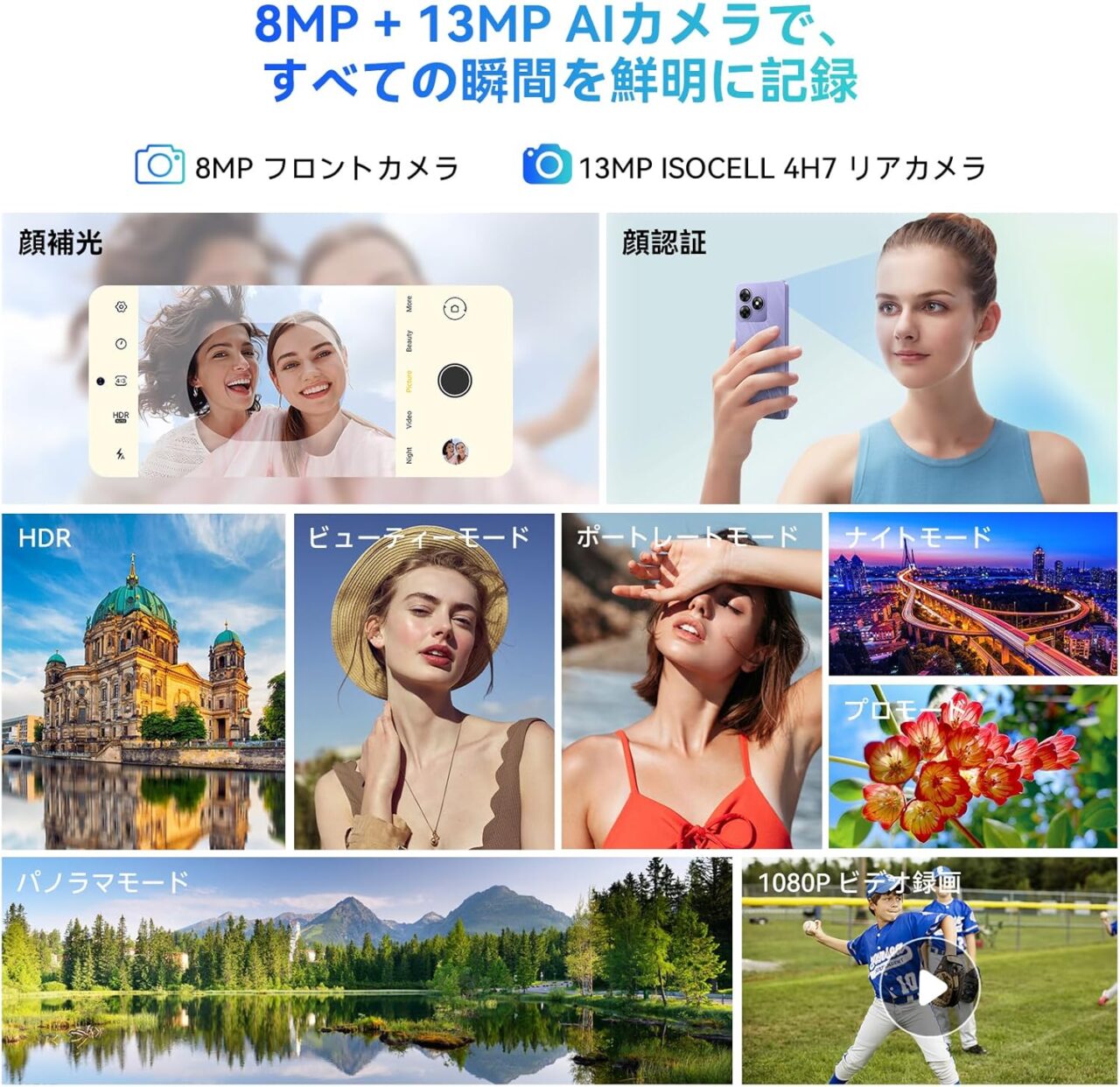 CPU(SoC)には「Unisoc T606 オクタコアプロセッサー」を、4GB RAMを採用。一般的なスマホ用途は問題なくスムーズにこなせるだけの性能を擁している。なお、最大8GBの仮想RAM拡張が可能だ。